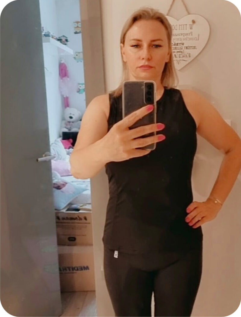 Justyna i jej zaangażowanie na treningach w połączeniu ze zmianą stylu odżywiania zaowocowały efektami w 1,5 miesiąca: